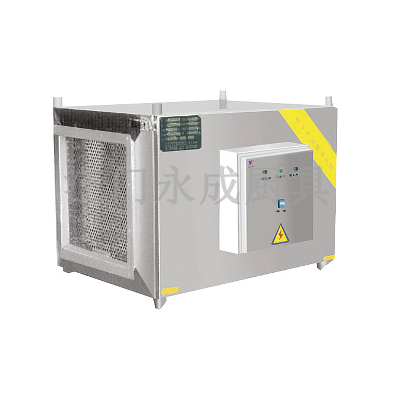 由于廚房灶具設(shè)備在烹飪時產(chǎn)生油煙,所以必須配備排煙系統(tǒng),也是衛(wèi)生部門規(guī)定。主要設(shè)備有:煙罩、油煙凈化器、風(fēng)機、風(fēng)柜、控制箱、排煙管道等,其覆蓋面積大于炊具區(qū)。只需定期清洗排煙管道,更換油網(wǎng),即可保持排煙系統(tǒng)暢通。根據(jù)高壓靜電原理除塵器的放電極電暈和收塵極(集塵極)接于高壓直流電源,當(dāng)含油煙氣體通過兩極間非均勻電場時,在放電極周圍電場作用下,氣體首先被電極,同時油煙粒子荷電,荷電后的油煙粒子在電場力的作用下被推向集塵極,從而達到除油煙目的。